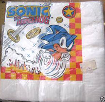 Here's a page you probably didn't think you'd see! Sonic the Hedgehog party supplies. Odd? Maybe. Fun? Sure! If you're going to have a Sonic party, you need to decorate. And it's not just birthday parties either, Valentines are included. What other special occaisions could be found? When these items were available, they were really inexpensive, so that means many people got them. You should still be able to find much of these today on vintage areas such as Ebay. Where were they found? Stores like Party City, Toys R Us, Target, K-Mart and possibly Wal-Mart. |