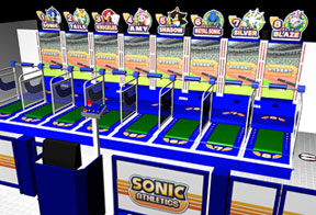 Look at this new kind of arcade game! It appears to be a treadmill. The set is "Sonic Athletics", likely some kind of Sonic/Mario Olympic Games offshoot. It looks like you would race against other players in the set, or, likely NPCs. Each machine has a number & character. | ![]() |