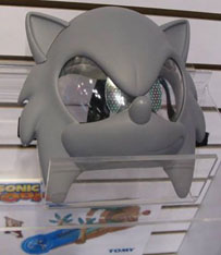 Here is the Sonic Boom Roleplay mask. This mask is EXTREMELY similar to the Jazwares roleplay mask, right down to the perforated plastic eye part. Was Jazwares forced to give their design to Tomy? Notice how it has the extra spikes Boom added to the design. The photo below the shelf is the wheel thing in some kind of palm tree base. Discovered by PatMac | |||||||||||||||||||||