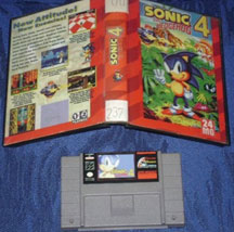 Here are two 'Super Nintendo' cartridges that are here to convince you "Sonic 4" is on there. What will you get instead? "Likely something that doesn't work" is the unfortunate answer. The left one uses Sonic 3D blast art and throws logos around, while the right is a direct rip of the Sonic 3 art with a "4" blatantly pasted over the 3. The cartridge art uses some random stock art, and the box-back doesn't even bother trying to be convincing. Photos discovered by: PiplupFan77 | ![]() |