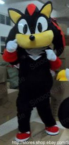 More miserable mascots! This is a normal mascot type suit with the big head construct, and it's quite clearly supposed to be Tails. However, it only has one tail. The suit seems to be missing the point of the character, for 169.99 . The shoes are also debatable, are they all white, or do they have the red heel? The small, generic gloves are not helping anything either. Beware of mascot suits sold on various websites, Sega does not ever allow anyone to sell official mascot suits to the public.Discovered by Shadowfoxx757 Shadow at left is equally bad, having no mouth, uneven all-black eyes, random red shoes, tiny gloves & ugly slouchy body suit. Fortunately, this terrible mascot won't fool anyone AND it's over 200 dollars--they'll likely sell exactly 0 of it. Photo discovered by CrystalKitsune |