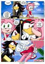 The Circle Palcomix did Sonic XXX Project This is obviously a play on "Sonic X" but the title tells you that "Under 18 Shouldn't Read" More underwear on the cover (don't get offended now!) This one has English dialogue and contains all the characters you see on the cover in fairly simple plots. The book isn't very long. As you can see from the page, all the interior art is colored as well, which is rare for a Doujinshi. Here, Amy looks to Shadow when Sonic has run off again. What will happen? Nothing too interesting or dramatic, story-wise. |