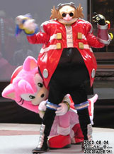 To promote something, apparently a mascot suit skit was held in what looks like a mall somewhere. These 4 suits did a play of some kind, complete with minimal props (notice Tails is holding an item, and has strange rings on his shoes. Also, Eggman has something strapped to his arm and is shaking something as the Amy (attacks?)) Knuckles was absent from this skit. The original photo-taker is someone in Japan, (note date stamp) but all 4 were discovered by Rae_Logan | |||||||||||||||||||||||||||||