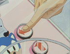 How do you get around in Joypolis? Through Sonic themed doors! The one at left is very stylish with a white line-art Amy on its' frosted glass. The handle to the right features classic Sonic giving a peace sign. You can also see the SA1 themed trash can (it has a speech bubble added which says "Dust Box" for whatever reason) A machine is next to the door on the right. | ![]() |
