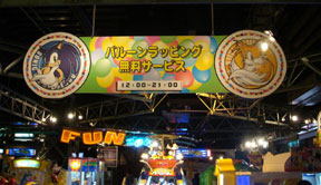 Sonic stuff even decorates the ceilings in Joypolis! The right shows a goal ring complete with light-up center star as a ceiling decoration. The other has a huge semi-transparent panel with SA Style Sonic face on it that serves as a light over some game machines. (yes that is Mr. Monopoly man to the left) | ![]() |