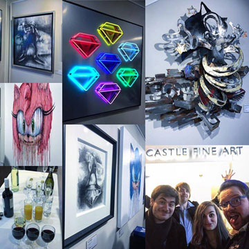 Here are some samples of the art from the Castle Gallery Sonic event. In the top left is a charcoal piece with Eggman, middle is a neon-making artist doing chaos emerald shapes, a metal-worker has created cut metal for Sonic doing a pose with stars & swirls. There's a "very drippy" paint Amy face, and by the same artist a very drippy Sonic face too. The bottom middle is another charcoal Eggman.