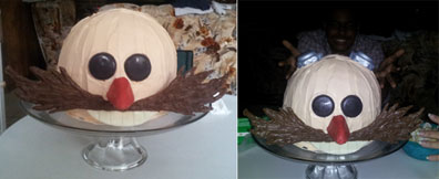 The nose & goggles are Rice Krispie's treats covered in white chocolate & then painted with edible food coloring. The silver food coloring is uncommon, but it works here. You can see the size of the cake, with the hands in the photo. An Eggman cake is a great idea. | |||||||||||||||||||||||||