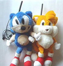 Are these plushes, or electronics? They're both! This is a pair of walkie-talkies where the electronic parts are contained within stuffed dolls of Sonic & Tails. They look a little odd with the antenna sticking up out of their heads...and you likely have to unzip the back somehow to use them. What's that wire coming out of the side of Sonic? How well did these things actually work? It's kind of an odd idea, but these are a rare & interesting thing to see. Photo discovered by PiplupFan77 | ||||||||||||||||||||||||||