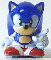 Here are 2 unknown figures. The first, fat one looks like it could be a Sonic stamp of some kind, but it is not from the set on Page 1...it sure is chubby, though. The second figure is cooler, and has an interesting pose. This looks like a PVC or possibly hard plastic figure. Unfortunatly, it has a chip out of the forehead paint, and a scuff on the top...Because there should be a soccer ball there. If you look at the 'dangler' lower on this page, this is the same figure, but broken. | |||||||||||||||||||||||||||||||
