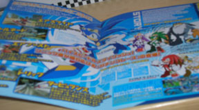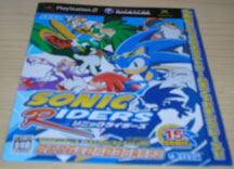 This is a Sonic Riders promotional leaflet. It's sort of like a mini-booklet given away to promote the game, likely in game shops before the game was on sale. You can see the Babylon Rogues, several screenshots and descriptions. | ||||||||||||||||||||||||||||||