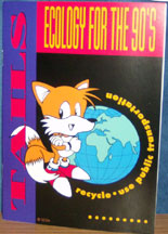 Interestingly, (but not that surprising for Japan) there was also a Tails version of this environmentally friendly notebook. This one says "Ecology for the 90s" at the top and still encourages you to recycle and use public transportation (on the back as well) The inside of this one is identical to the Sonic one, seen above. The Sonic notebook appears to use a new or slightly modified stock art, but this one does not. It uses one of the older very 'snooty' versions of Tails where he has quite a long nose. This stock art didn't appear in Japan all that often. Photographed and owned by Rathe | |||||||||||||||||||||||||||||||||