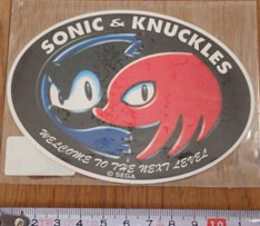 A cool Sonic & Knuckles sticker! This is a large (notice ruler at the bottom) oval sticker of the Sonic & Knuckles logo (this thing is an absolutely brilliant piece of graphic design, so cool, instantly recognizable, standing the test of time). It has the game title at the top & spells out "Welcome to the next Level" at the bottom in an almost-cursive type font. The copyright is small at the bottom as well. Photo discovered by @JapanAnimePosters on Instagram |