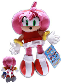 This Amy is just odd! She is from Segaprize Europe She seems really quality with nicely sculpted hands with good fingers, nice shoe/boots, gold bracelets & good fabric. There's also tags all over, 2 paper tags and 1 cloth tag on her back. But then....her head is just SO FAT! And look at her body...it's like a big square or a flattened rectangle...thing. Her spikes have pressed her ears down/forward, but her bangs are nicely stuffed. The eyes are embroidered...and her over-all head shape/face is good but those big messed up spikes and wierd body just throw the whole thing off. It is a real plush that just went really wrong in a bunch of ways. How did Sega pass the quality control for this messy doll in Segaprize Europe? It has all the 'factors' of Amy but they're mostly so messed up it looks like it could be fake. The whole thing just seems like a mix of really good effort and really odd flaws at the same time. Photo discovered by Pichu97 |