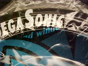 Black Sonic the Hedgehog Ash Tray: The design on this one is really rather cool. It has a 'spatter spray-paint' like effect that was really different and edgy for the time. You can kind of see it in the photos, but the bag-glare gets in the way a little. |