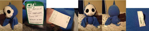 Someone buys the Manic Panic Ghost! Here, you can see that it's clearly the ghost and not even trying to be the Chao. The little smily face, dot nostrils/head shape etc. This photo set also gives you a look at the typical sample tag |