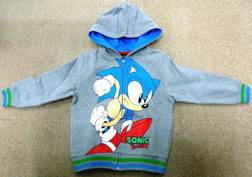 Another hooded sweatshirt to feature Sonic & Shadow. This time Sonic is shown jumping, while Shadow is running forward. The interior here appears to be blue, but you can't tell if it has pockets. | ![]() |