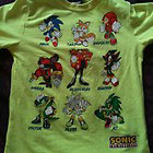 What exactly is going on with this shirt? The photo is so tiny that it 's hard to tell. They're using a modern/2011 stock art for Sonic but he's on some sort of black splash backround with dots? It's hard to tell. If you have a larger photo of this, send it in for credit! | |||||||||||||||||||||||||||||||||||