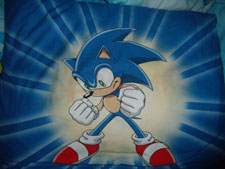 These 2 photos are from the same blanket set, it's reversible! It has 'charge up' Sonic on one side and happy Tails on the other. The Sonic side is...really a super bright aqua, and the Tails side has yellow and orange rays arranged around him. Each pillow case has the Sonic X logo as its only design, and color coordinates with the side of the blanket. This is for a single bed only, and has no sheet with it. (so it won't work for double beds) This can be bought in summer/fall 2010 at www.NEXT.co.uk web site for 25 pounds. Photos discovered by OrangeUnicorn | ![]() |
