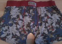 in the elastic around the waist band. The second is a bit busy-er with variously cropped classic Sonic art in rectangles as an all-over pattern. This one has his name on the band too. Both underwears can be found at Marks & Spencers stores. Photographed & owned by Kari | ||||||||||||||||||||||||||