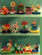 There is a Genesis on top of the TV, and look how well it is sculpted! It has the controler depicted realistically beside it too. Even the back of the CRT style tv is detailed. It's a surprising amount of quality put into the toy that you don't generally see on other photos. To see the other views of this, you can go to Fast Food International as this wasn't a USA exlcusive item. This was part of the Happy Train Promo. You can see the TV in there with all the other items in the photo at left. "In 1994 McDonalds celebrated the 15th anniversary of the Happy Meal by having a set of toys called "The Happy Train". This promotion contained 15 toys from different franchises that had previously been in happy meals. The toys all connected like cars and as you'd guess, they make a train. Characters such as Bugs Bunny, Snoopy, and Little Mermaid all appeared in this train and sure enough so did Sonic the Hedgehog." Sonic related Photo, info & owned by SonicToast |