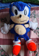The other one beside it is by Dakin, and could be found in Bueler's grocery store in '93. It does have fingers, they're just missing here. This one is over-all rather chubby with stumpy legs, but it is still an all-right classic. 2 dolls photographed and owned by: dravens_shadow, Terrycloth Sonic photo by Berzerker | |||||||||||||||||||||||||