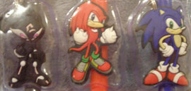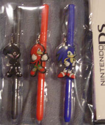As seen hear the styluses a dangly charm on each one. You get the set of all 3, with Shade (a female enemy) Sonic in a new pose (hands on hips) and Knuckles in a rather standard fists-up pose. At an inch each, the charms are pretty detailed for their small size. These were also at EB Games in Canada as well.