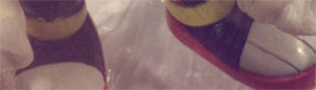 Shadow is also more prone to paint defects because all his plastic seems to be black so the accents are painted on, giving the chance for smears, holes, 'thin spots' and uneven-ness. This is extra bad, because Shadow is soooo scarce that you have to buy him even if you notice his paint isn't spot-on in the store. See how his shoes look dirty/dingy? They're not, its just his paint over the black surface. | ![]() |