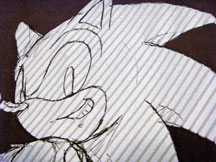 TopHeavy calls this shirt "warpspeed", but it's actually a re-design of another similar shirt. It has Sonic X style Sonic running...but VERY big and they've added blue metallic paint to some of the edges and inlines, though the strips of it are wider than their usual application. The result is pretty nice, though it does give him a rather shiny eyebrow. The size of the design on the shirt also keeps it dynamic. This is one of their small size pieces. Photos by Top Heavy, discovered by Yue. Available online in 2009 at TopHeavy Store. | |||||||||||||||||||||||