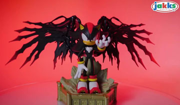 Going from 'deluxe' to 'very deluxe', here's the very cool Collectors Edition Shadow figure! He's from Sonic Shadow Generations, and has the "Dark Wings" powerup as giant wings you can put on him and pose. The box exterior doesn't mention the game, but this game is the only one where that powerup appears. The box has the usual fold-open front flap with a big photo, which then reveals a CG from the game on the inside, and the window for the figure. This makes it good to keep MIB for display, and the figure looks like you can take it out/put it back as well. It's a quality box to suit something like this. |