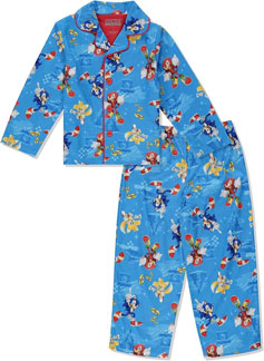 Sleeping in Sonic stuff? Of course! Here you can see the nice variety of Sonic the Hedgehog sleepwear produced for the USA. Watch out for the spelling though, if you're looking to search or buy, it can be Pajama, or Pyjama or PJs. No matter how you spell it, this page is full of fuzzy, soft or warm things to sleep in with lots of great Sonic designs to choose from. Wherever possible buying locations & prices are included with the entry, so you can hopefully shop for some of these too. Gotta sleep fast...or just fast asleep? |